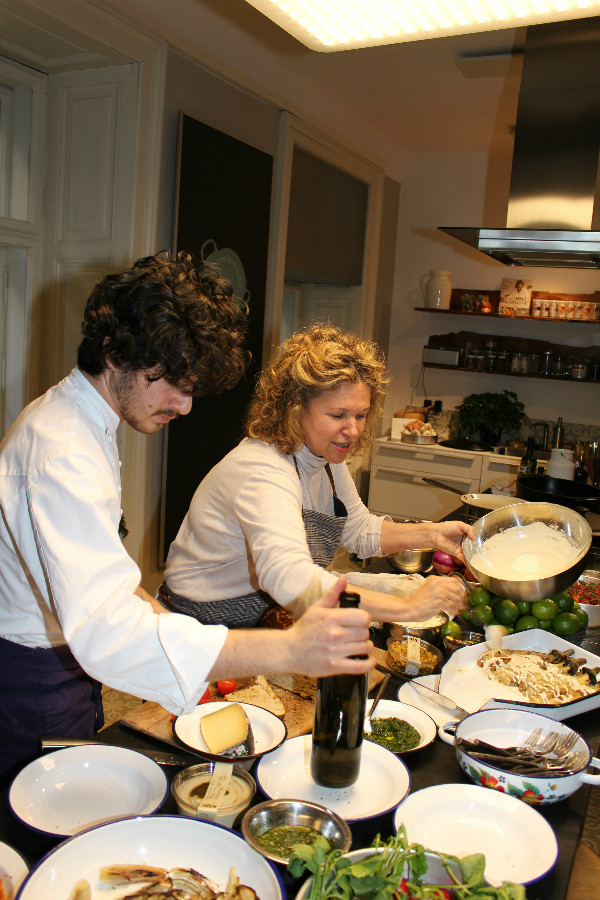 Neni steht für orientalische Küche, mit israelischen, marokkanischen, libanesischen, indischen und amerikanischen Einflüssen. Es wird experimentiert und Haya vereint in ihren Gerichten Zutaten aus sämtlichen Ländern. Wenn Haya kocht, dann macht sie das mit Leidenschaft und hat Spaß dabei! Die Zeit in der Kochschule vergeht wie im Flug. Haya beschreibt und zeigt uns nicht nur wie die Gerichte zubereitet werden, sondern erzählt uns auch sehr viel über die Zutaten, die sie verwendet. Sie verwendet nur beste Zutaten und weiß aufgrund ihrer vielen Reisen auch woher sie diese bekommt.