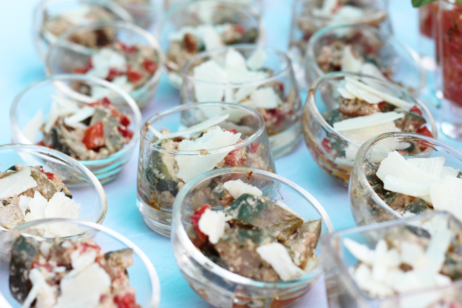 Prosciutto San Daniele mit Meole, Beef Tartare mit getoastetem Schwarzbrot, Graved Lachs mit Tabulee, Quiche Lorraine, Mango-Mozarrella-Avocaco Glasnudel Salat, eingelegtes Gemüse, Spanferkel, Satay Spieße, Checken Wings, Roastbeef mit Cumberland, Garnelen vom Grill und Branzino-Filets. Dazu gab es hausemachte Limonaden und feinsten Wein aus der Region.