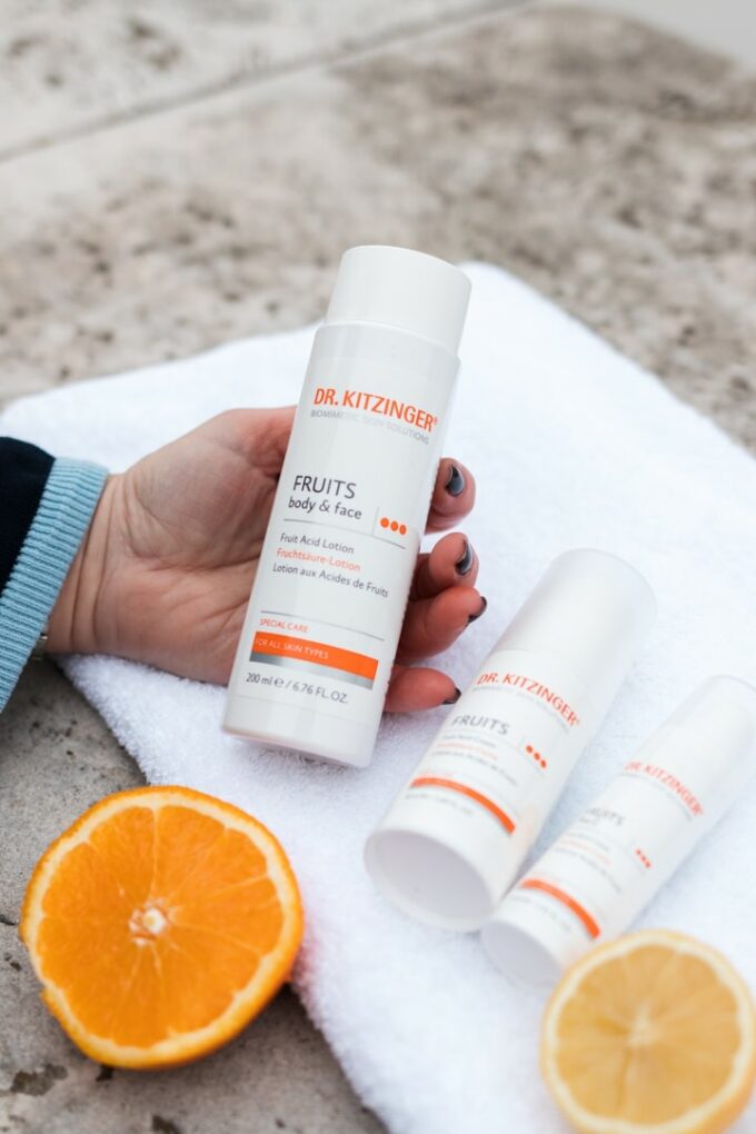 Vor mehr als 20 Jahren habe ich bei einer Dermatologin ein professionelles Fruchtsäurepeeling gemacht. Damals wegen einem riesigen dunklen Pigmentfleck auf der Stirn. Abgesehen davon, dass ich die Fruchtsäurebehandlung als schmerzhaft in Erinnerung hatte, konnte ich damals 1 Woche lang das Haus nicht verlassen. Obwohl meine Haut extrem stark auf die Fruchtsäure Behandlung reagiert hat, war der Pigmentfleck wenige Wochen später erneut da. Seit dieser Erfahrung setze ich auf sanfte (und günstigere) Methoden. Seit Jahren verwende ich 1-2 Mal im Jahr die FRUITS Serie von DR. KITZINGER® Skin Care. Im Beitrag erzähle ich euch von meinen Ergebnissen.