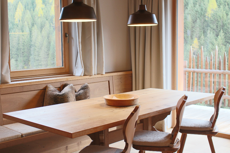 Bei der Einrichtung dominieren Naturmaterialien und ein moderner Stil. Das gesamte Chalet ist lichtdurchflutet und heimelig. Wenn nicht die Natur locken würde, könnte man glatt die gesamte Zeit im Chalet verbringen und die Zeit würde dennoch verfliegen.
