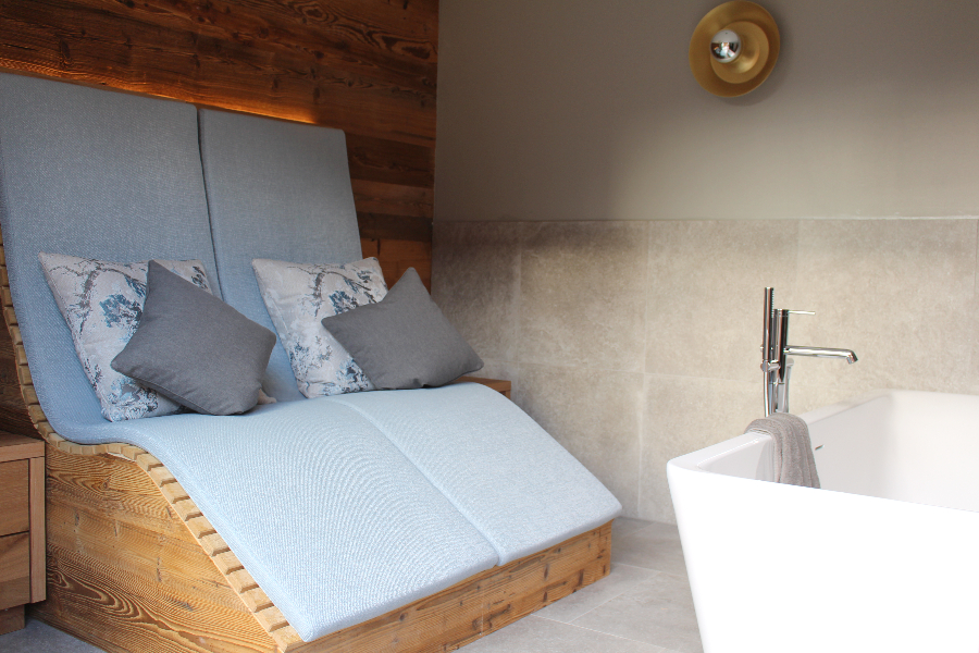 - Private Spa mit freistehender Badewanne, Familiensauna (mit Bergblick) und Outdoor-Naturstein-Badewanne
