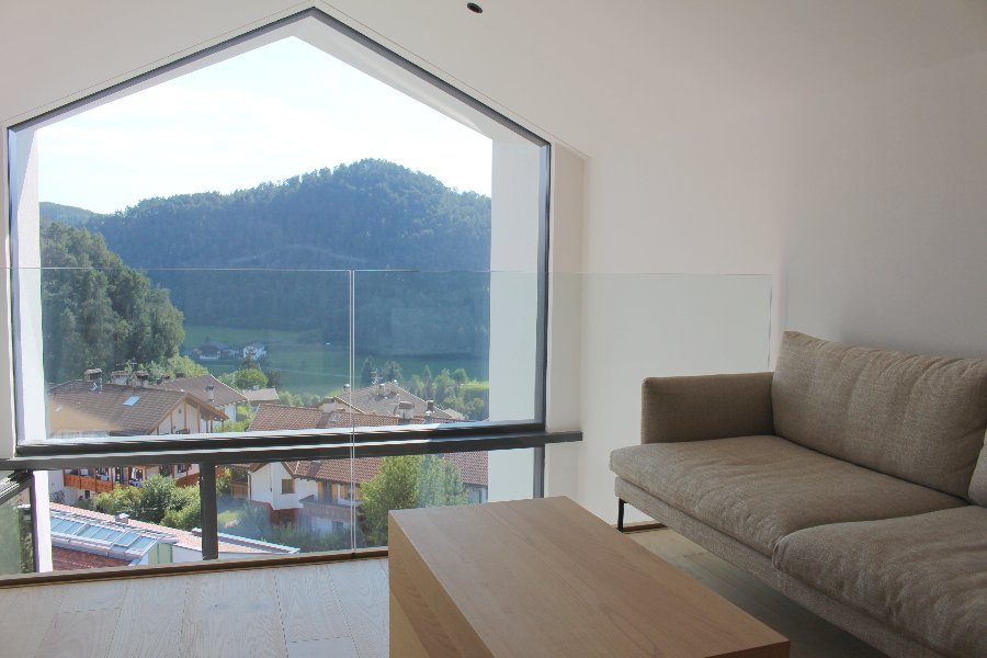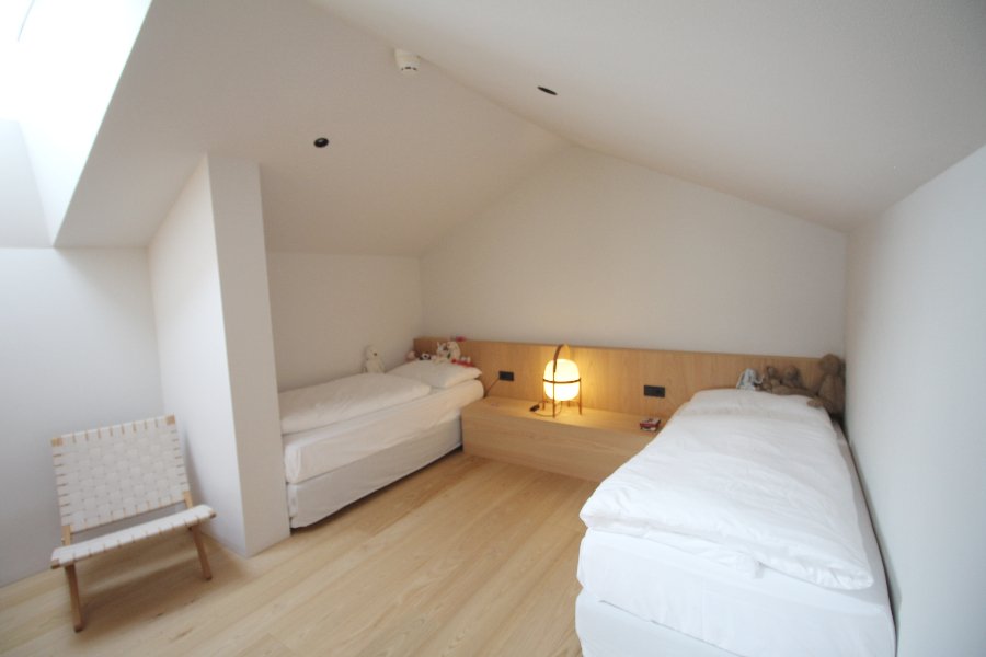 Der obere Stock bietet einen zweiten Schlafbereich (mit 2 Einzelbetten) und einem Wohnbereich der dank der hohen Glasfront einen traumhaften Ausblick bietet. Insgesamt ist die Suite lichtdurchflutet und man fühlt sich dank der Aussicht dem Himmel ganz nah. Ein tolles Wohngefühl, dass den Urlaub zu einem ganz besonderen macht. Die Zimmer im alpinen Chic überzeugen übrigens mit lokalen Materialien und exquisiten Möbeln.