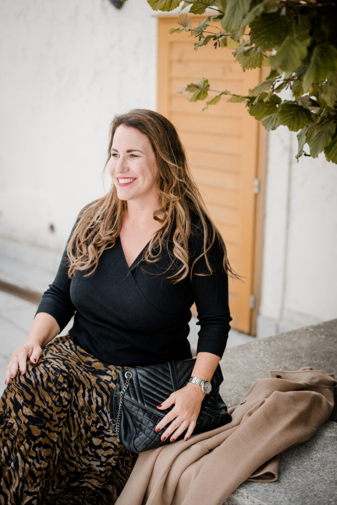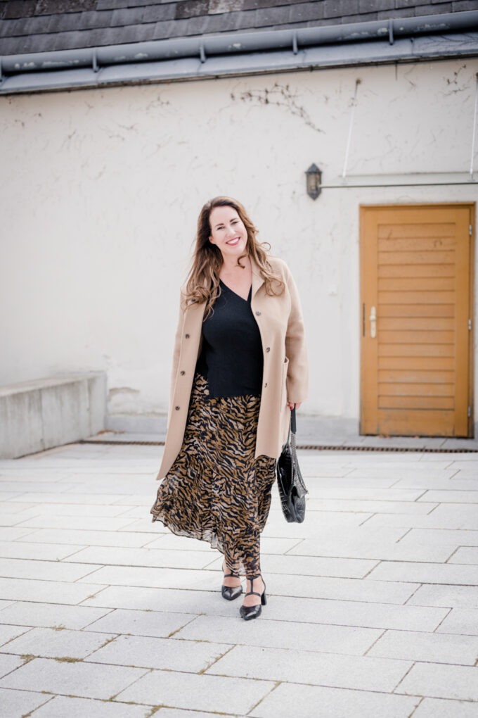 Animal Print wäre für mich früher in der Business-Garderobe ein No Go gewesen. Mittlerweile finde ich, dass es in keinem Kleiderschrank fehlen darf. Beim Business Look, trage ich allerdings nur 1 auffälliges Animal Print Teil (entweder Rock, Kleid, Tuch oder Accessoire) und kombiniere es mit einem einfarbigen Mantel oder Blazer. Damit ist man chic und stylisch zugleich.