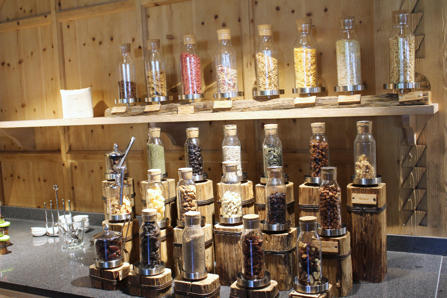 In der Früh gibt es bis 10:30 ein umfangreiches Frühstücksbuffet mit Allem was das Herz begehrt und wahlweise sogar ein Langschläfer Frühstück bis 12:00. Von 13:00 bis 15:30 gibt es gesunde und leichte Snacks und am Abend ein mehrgängiges Gourmet-Wahlmenü.