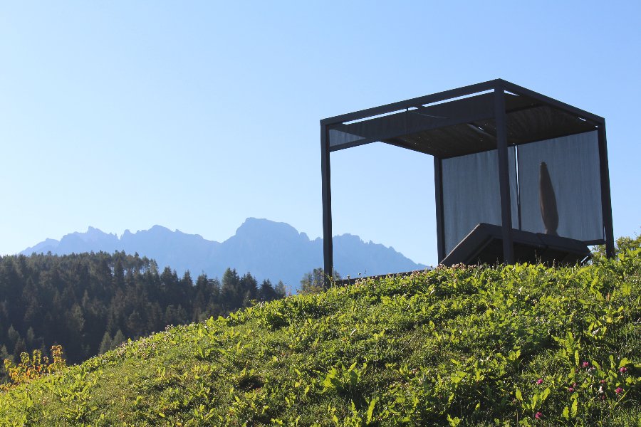 Im gesamten Wellnessbereich hat man das Gefühl Teil der umliegenden Naturlandschaft zu sein. Egal ob beim Infinity Pool, im Saunabereich, in den Ruheräumen oder im Whirlpool, blickt man auf die atemberaubende Bergkulisse der Dolomiten. Man ist umgeben von saftigen Wiesen, klarer Bergluft und sanften Wiesenhügeln. Jede Tageszeit birgt ihren ganz eigenen Zauber, den man im Wellnessbereich „einfangen“ und genießen kann.