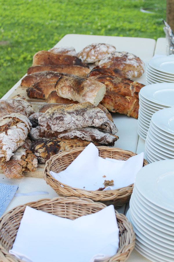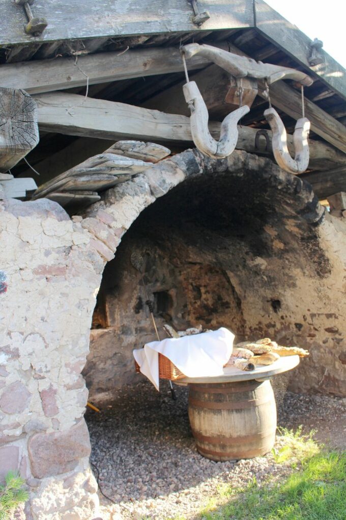 Wir hatten das Glück dass wir bei unserem Aufenthalt an einem Abend verschiedenen Sorten von frisch gebackenen Brot probieren durften. Dieses wurde frisch im 300 Jahre alten Backofen im Innenhof zubereitet und alleine der Duft hat mir schon das Wasser im Mund zusammenrinnen lassen. Dazu gab es herrliche Aufstriche und ich habe Brotsorten kennen gelernt, die ich noch nie gegessen hatte. Wirklich sehr lecker und der perfekte Auftakt für das folgende Menü an diesem Abend. Verwendet wurden übrigens Kräuter aus dem eigenen Kräutergarten. Mehrere Hochbeete, die nach Themen zusammengefasst sind (z.B. Brot und Salz oder Rauch und Segen) laden zum Schnuppern ein.