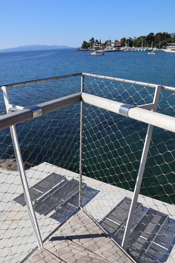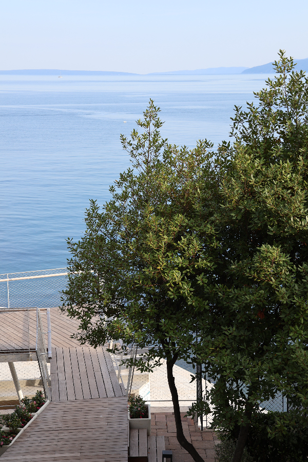 Diese wunderschöne Adresse liegt oberhalb des Strands und der Lungomare, einer 12km langen Promenade, die direkt an der Adriaküste entlangführt. Die Promenade ist übrigens wunderschön und bietet eine atemberaubende Kulisse auf das Meer und malerische Hotels, die den Weg säumen. Es gibt auch einige Cafes und Bars, die zum Verweilen und Träumen einladen. Auch wenn das Hotel Ambassador nicht weit vom Stadtzentrum Opatija entfernt liegt, ist es ruhig und ihr habt uneingeschränkte Privatsphäre. Das Hotel bietet auch einen eigenen Privatstand mit Liegen, nur für die Hotelgäste.