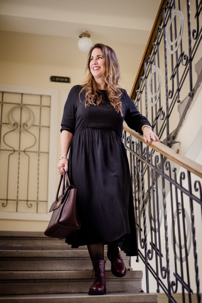 Ich mag „unkomplizierte“ Mode, denn gerade in der Früh ist die Zeit, dank meiner beiden Volksschulkinder immer knapp. Da muss ich einfach in wenigen Minuten fertig sein. Im Job kombiniere ich sehr gerne Kleider mit Stiefel oder klassischen Pumps. In der Freizeit ziehe ich dann doch lieber Booties oder Sneaker dazu an. Mit den richtigen Accessoires (Schmuck, Schuhen oder Handtaschen) kann ich den Look schnell vom Business- zum Casual Look verwandeln und das liebe ich sehr. So kann ich direkt vom Abholen der Kinder bei der Schule mit den beiden etwas unternehmen, ohne extra nach Hause umziehen fahren zu müssen.