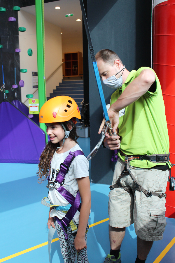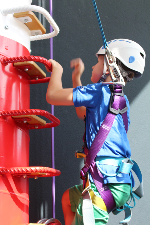Das Besondere an dieser Kletteranlage ist das vollautomatische Sicherheitssystem, bei dem keine zweite Person zum Sichern benötigt wird. Dieser Bereich kann nur nach vorheriger Anmeldung und unter fachkundiger Aufsicht genutzt werden. Die Kinder entscheiden selbst wie hoch sie klettern möchten. Es gibt auch die Möglichkeit einen gesicherten Sprung von einer hoch gelegenen Plattform zu wagen. Nach einer ersten Überwindung, konnten meine beiden dann gar nicht mehr genug davon bekommen.