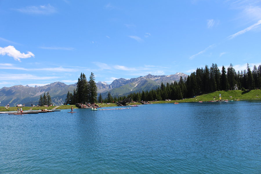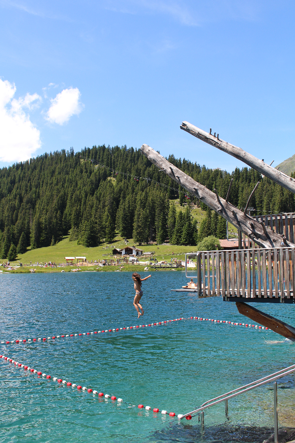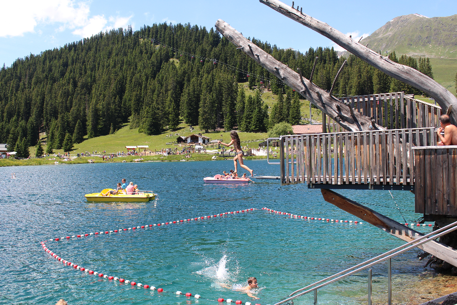 Dieser Badesee sticht vor allem durch seine idyllische Lage und das atemberaubende Bergpanorama. Außerdem werden hier viele Spielemöglichkeiten geboten.