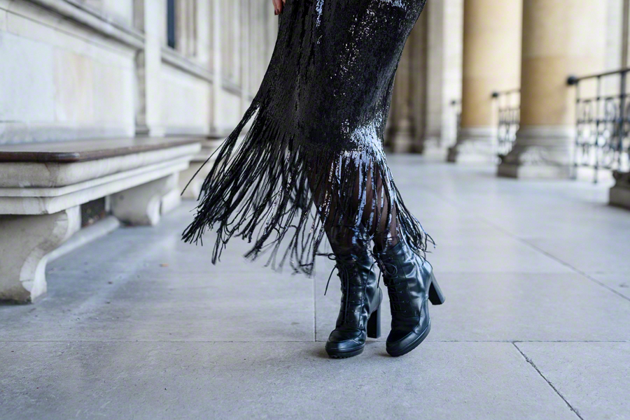 Was das Weihnachtsoutfit betrifft, darf es bei mir für diesen speziellen Anlass gerne ein bisschen „mehr“ sein. Da setze ich gerne auf Glitzer und Pailletten. Bezüglich der Farbe gefallen mir klassische Farben wie Schwarz, Gold oder Silber. Der Vorteil davon ist, dass man diese Outfits auch super am Silvesterabend tragen kann.- Weihnachtstrend Pailletten