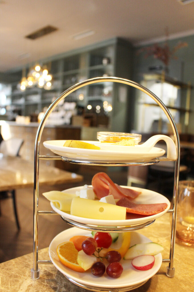 Direkt im Hotel ist ein Café in dem man Frühstücken kann. Nachdem es derzeit kein Frühstücksbuffet gibt (aufgrund der Covid19 Richtlinien), bekommt man Wurst, Käse, frisches Obst, Gemüse sowie frische Brötchen, Semmeln und Croissants, direkt an den Tisch serviert. Heißgetränke und frisch gepresste Säfte gibt es natürlich auch und auf Wunsch kann man sich sämtliche Eiergerichte bestellen.
